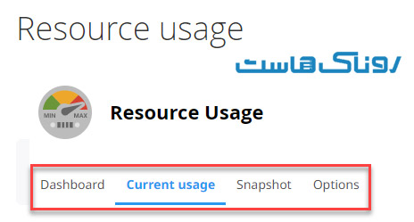 ۷. دومین تب، Current usage (مصرف فعلی) است که برای اطلاع از مصرف لحظهای منابع به کار میرود.